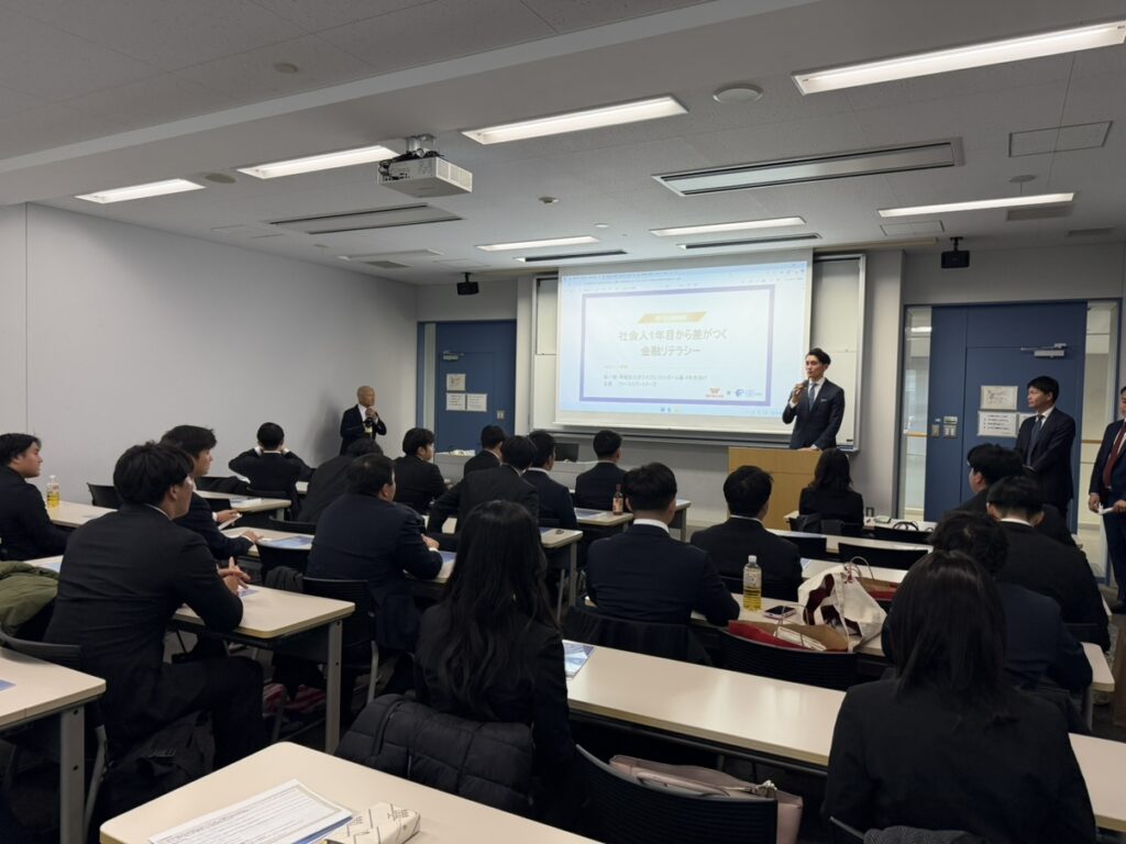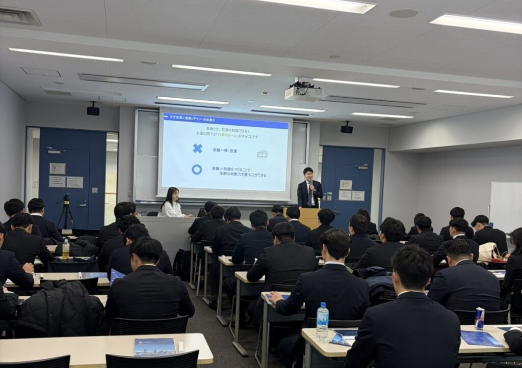 参加者からは「社会人を控え、資産運用にも興味を持っていたところだったので、とてもためになった」「社会人1年目から賢く資産を運用することで将来不自由ない生活を送りたいと感じた」「自分自身は金融業界に就職するため、投資などの制約があるがその中でやれる資産運用を知りたいと思った」といった声が寄せられ、有意義な学びの場となりました。