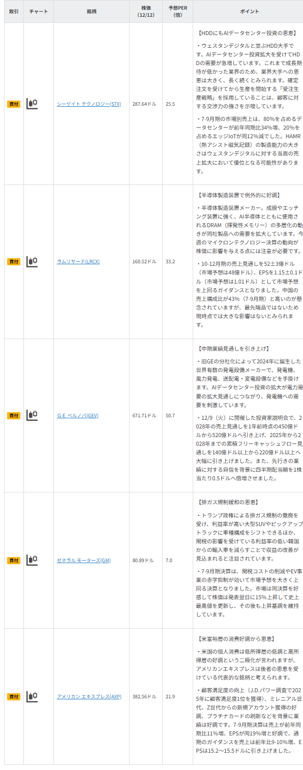 図表4 今週の5銘柄の投資指標
