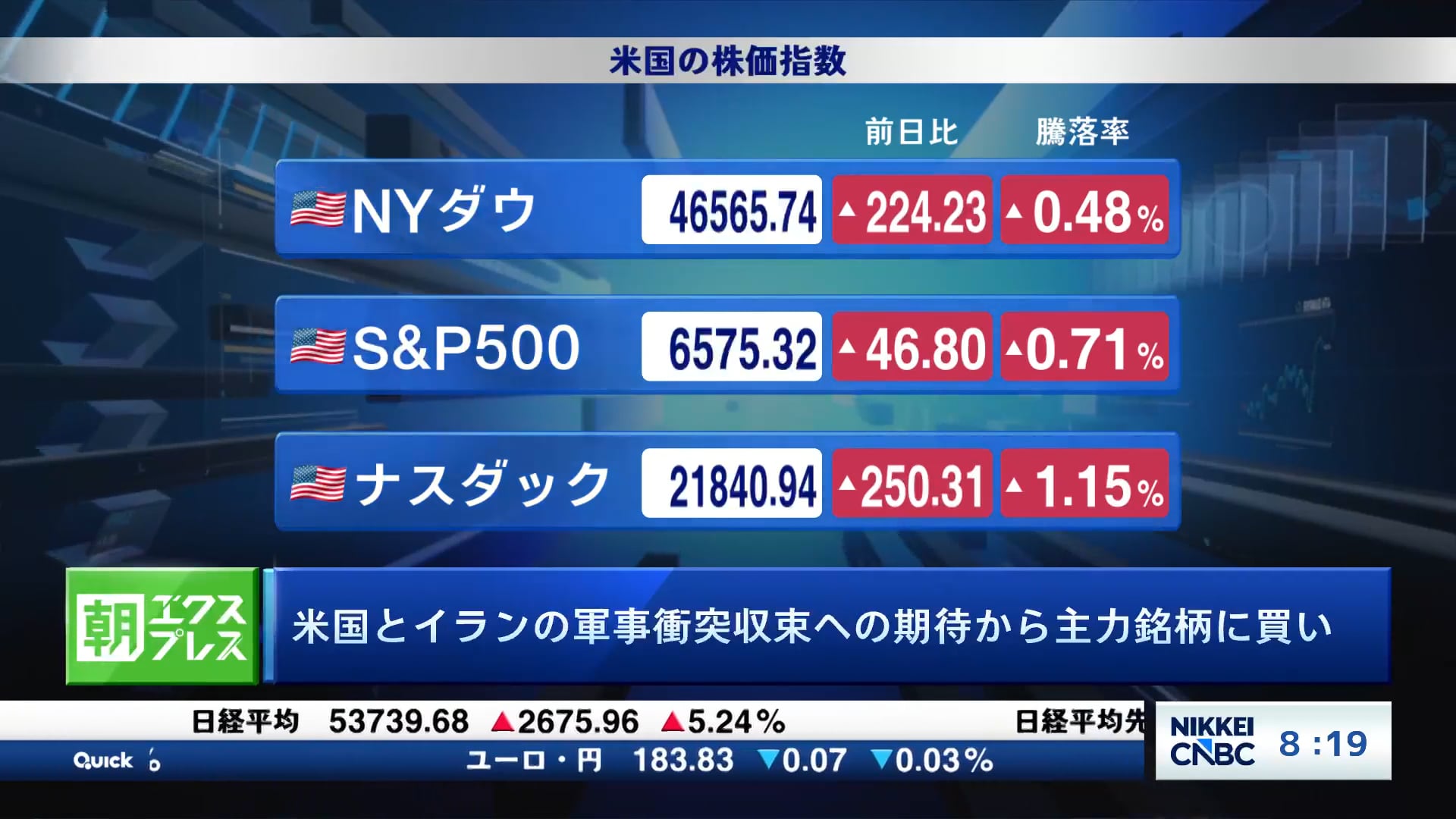 米国とイランの軍事衝突収束への期待から主力銘柄に買い