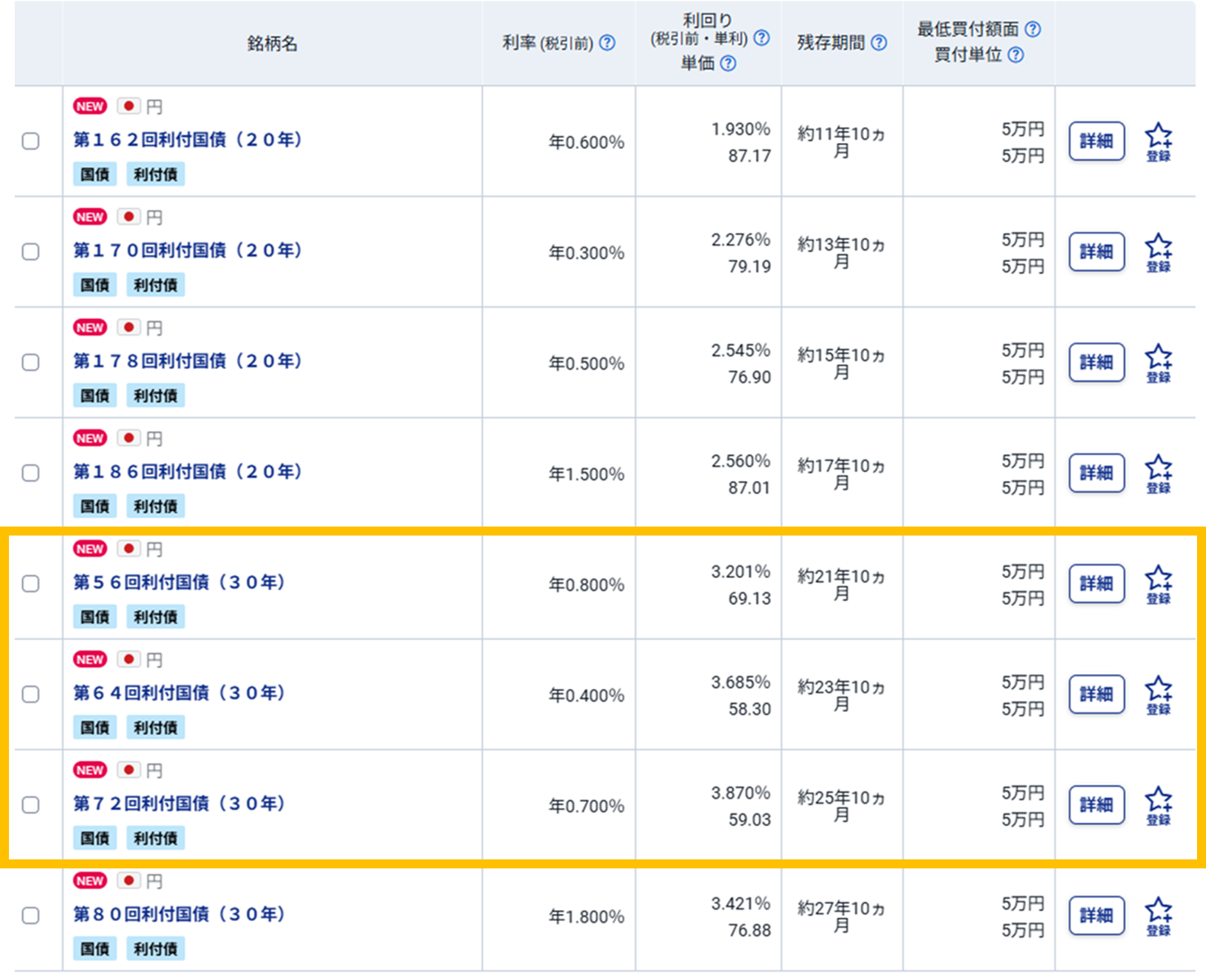 図表4 ディスカウントの既発国債 検索結果