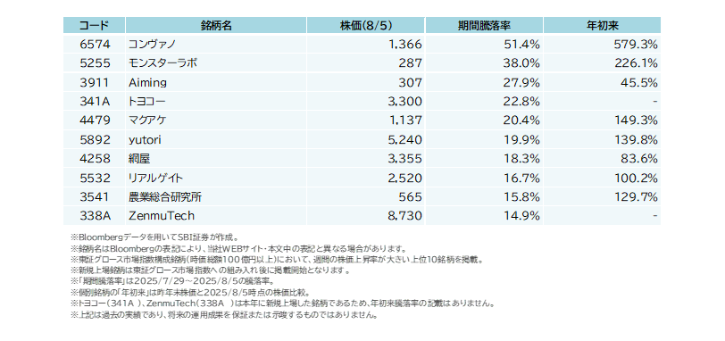 【参考】 7/29(火)~8/5(火)で株価上昇が大きかった東証グロース市場指数構成銘柄