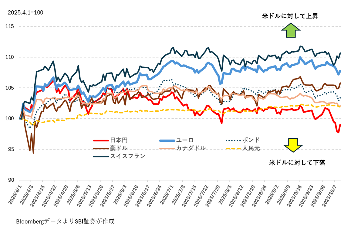 「解放の日」以降の主要通貨の対米ドルレートの推移