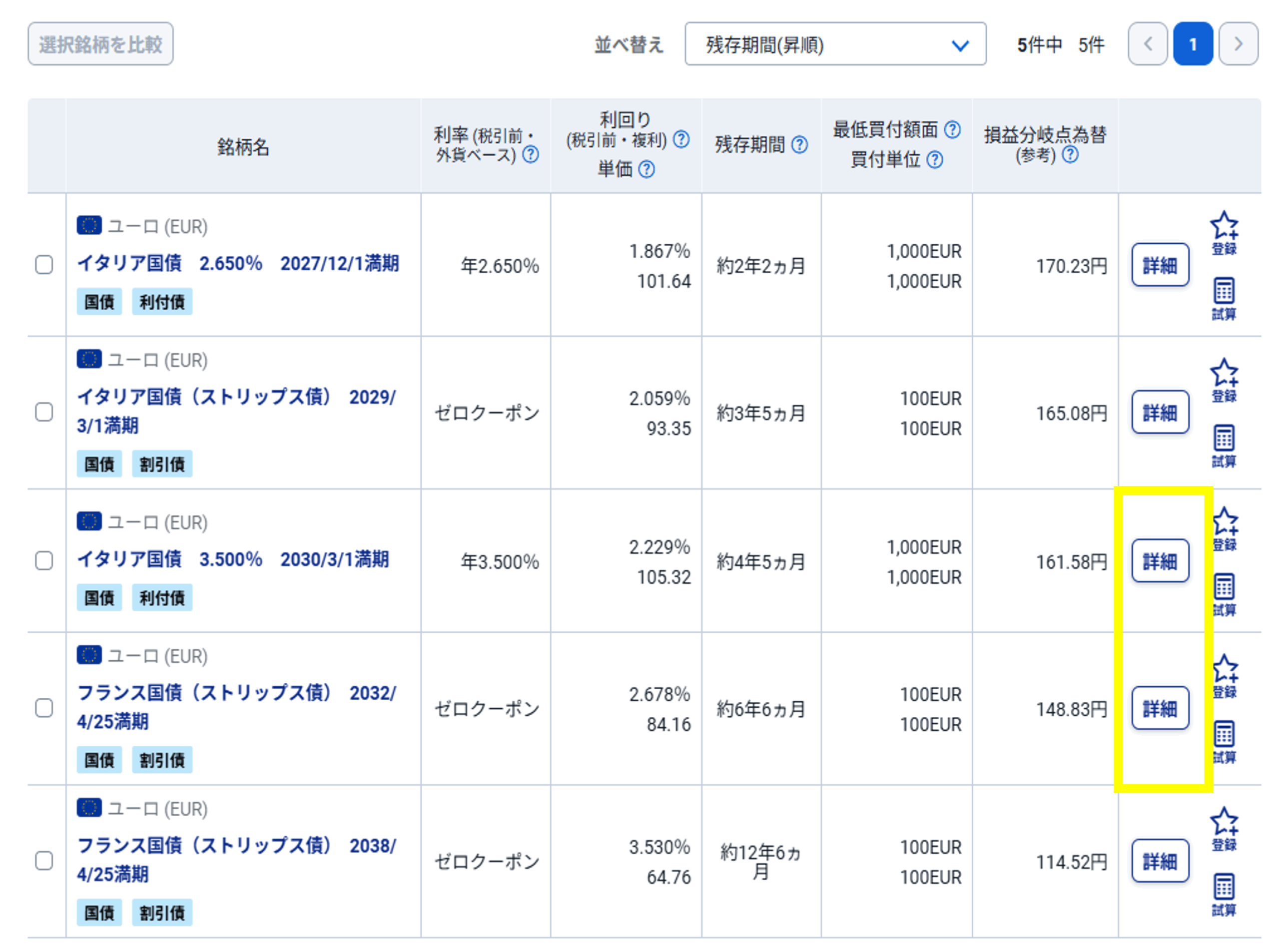 ユーロ債(既発債)検索結果