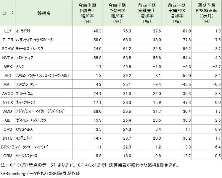 7-9月期の業種別予想EPS増加率