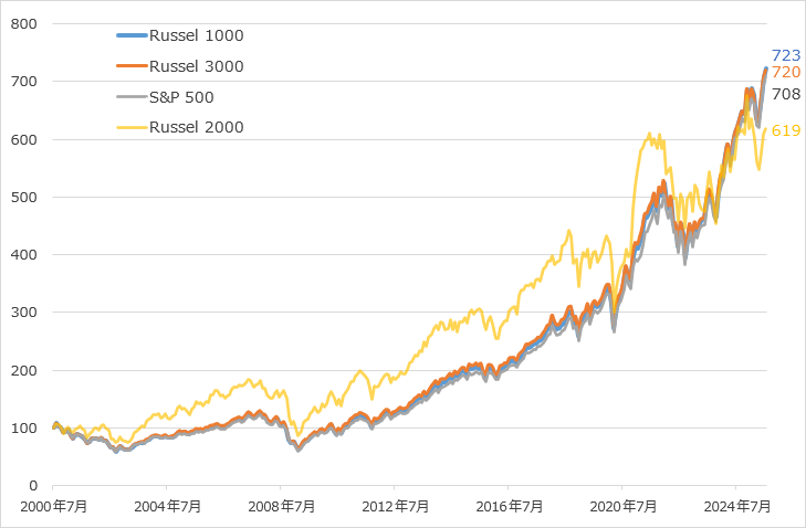 ラッセル指数とS&P500の長期25年パフォーマンス比較