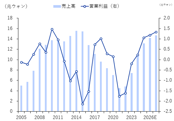 HD韓国造船海洋の売上高・営業利益の推移と見通し