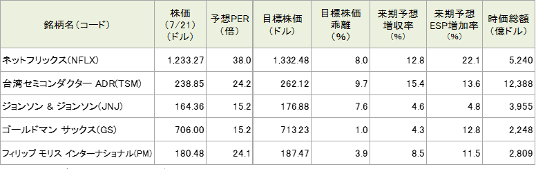 今週の5銘柄の投資指標