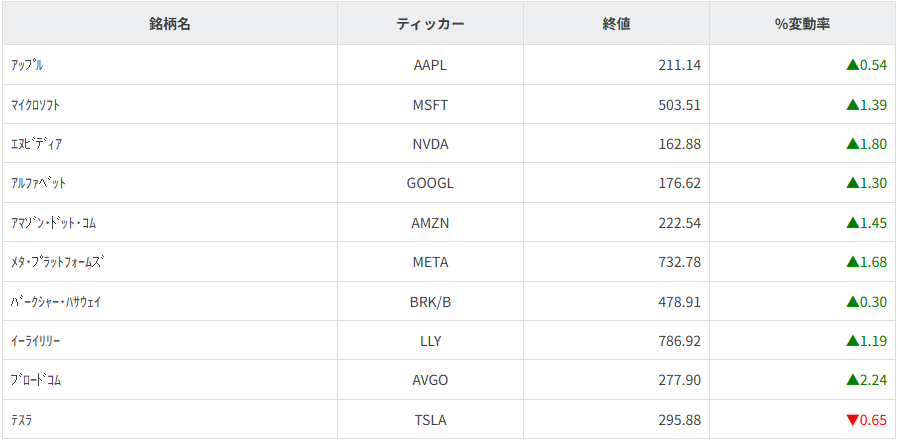 S&P500日中足チャート