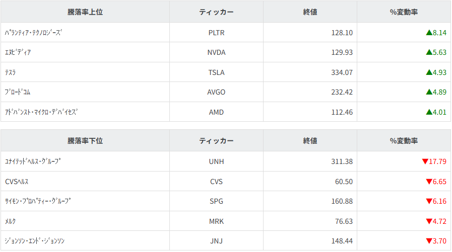 S&P500日中足チャート