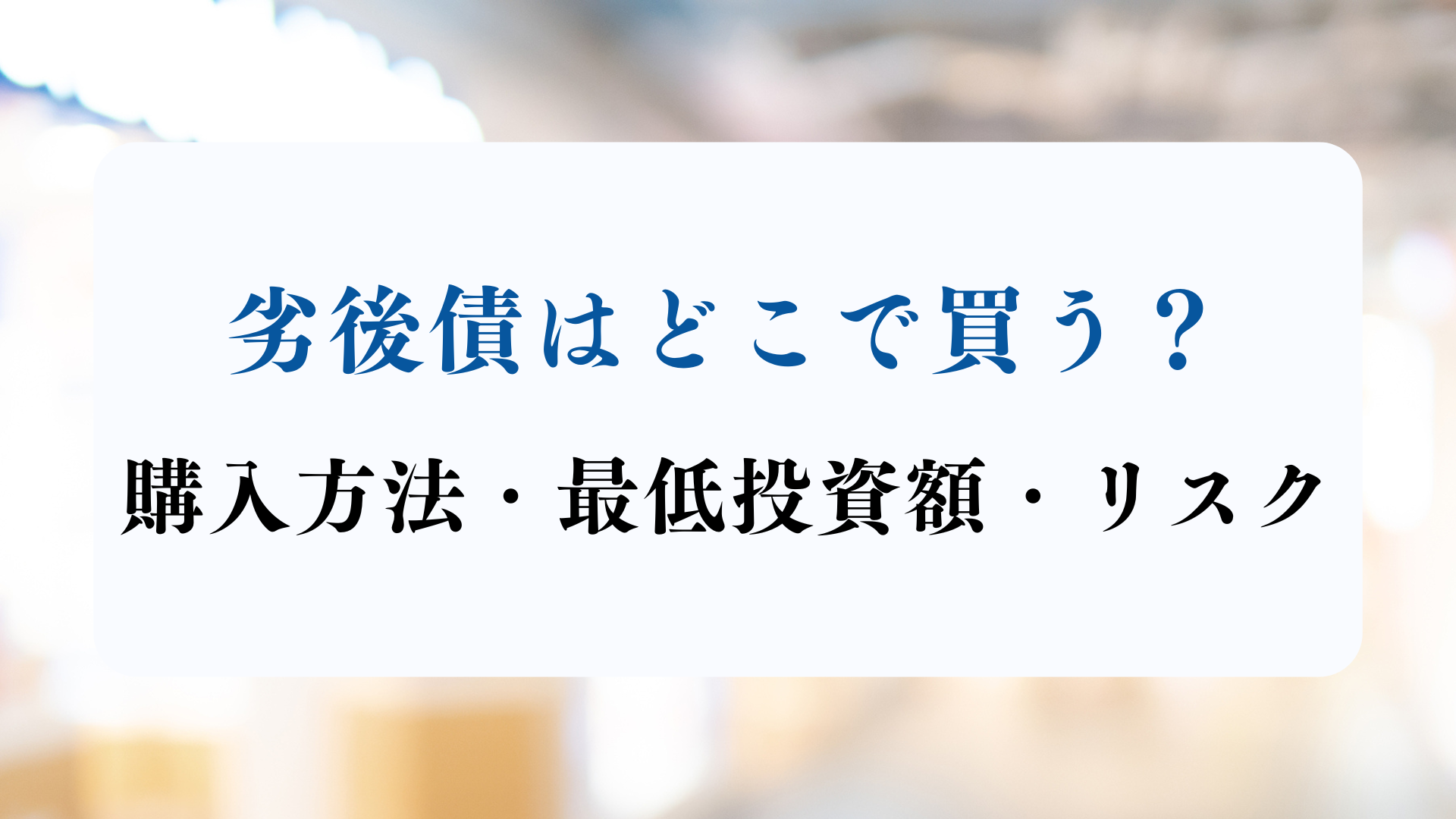 劣後債 どこで買う