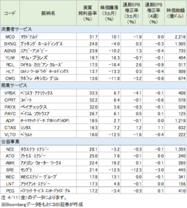 図表3 消費者サービス、商業サービス、公益事業の利益率が高い銘柄