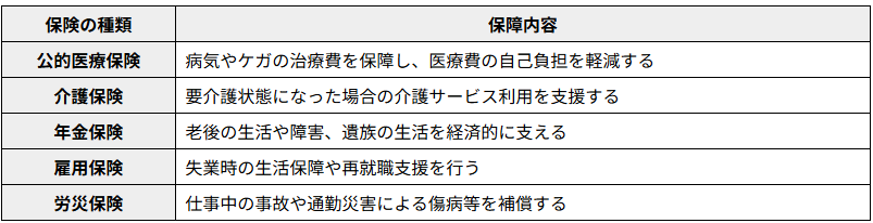 公的保険の種類一覧