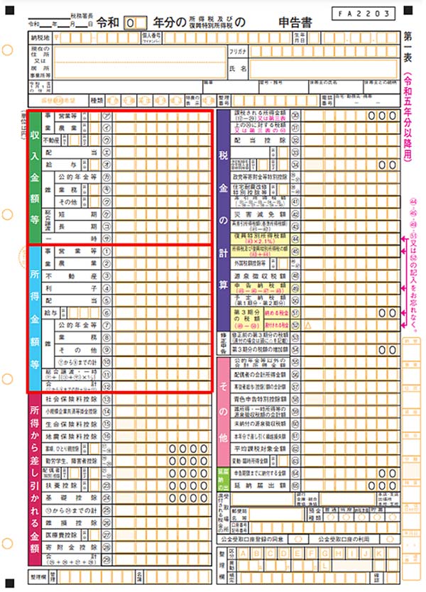 確定申告での所得・収入の書き方