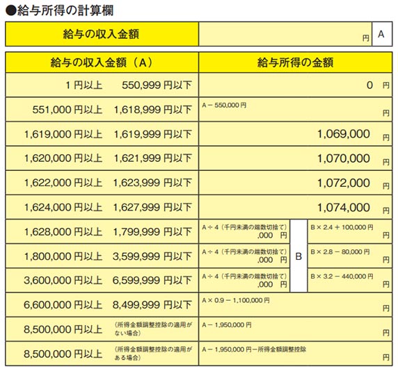 給与所得の計算欄