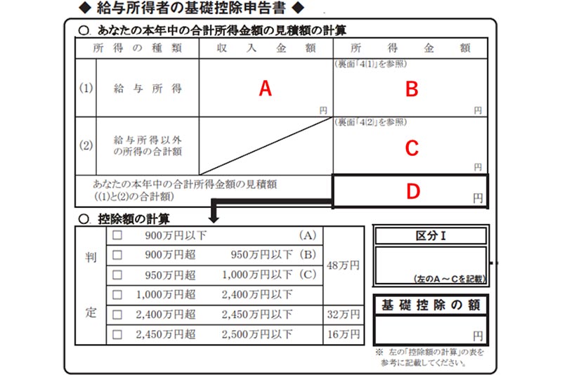 給与所得者の基礎控除申告書