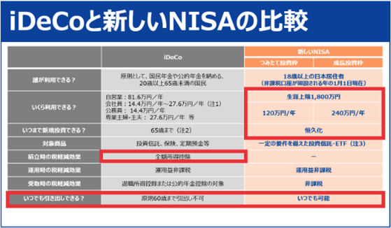 iDeCoと新しいNISAの比較
