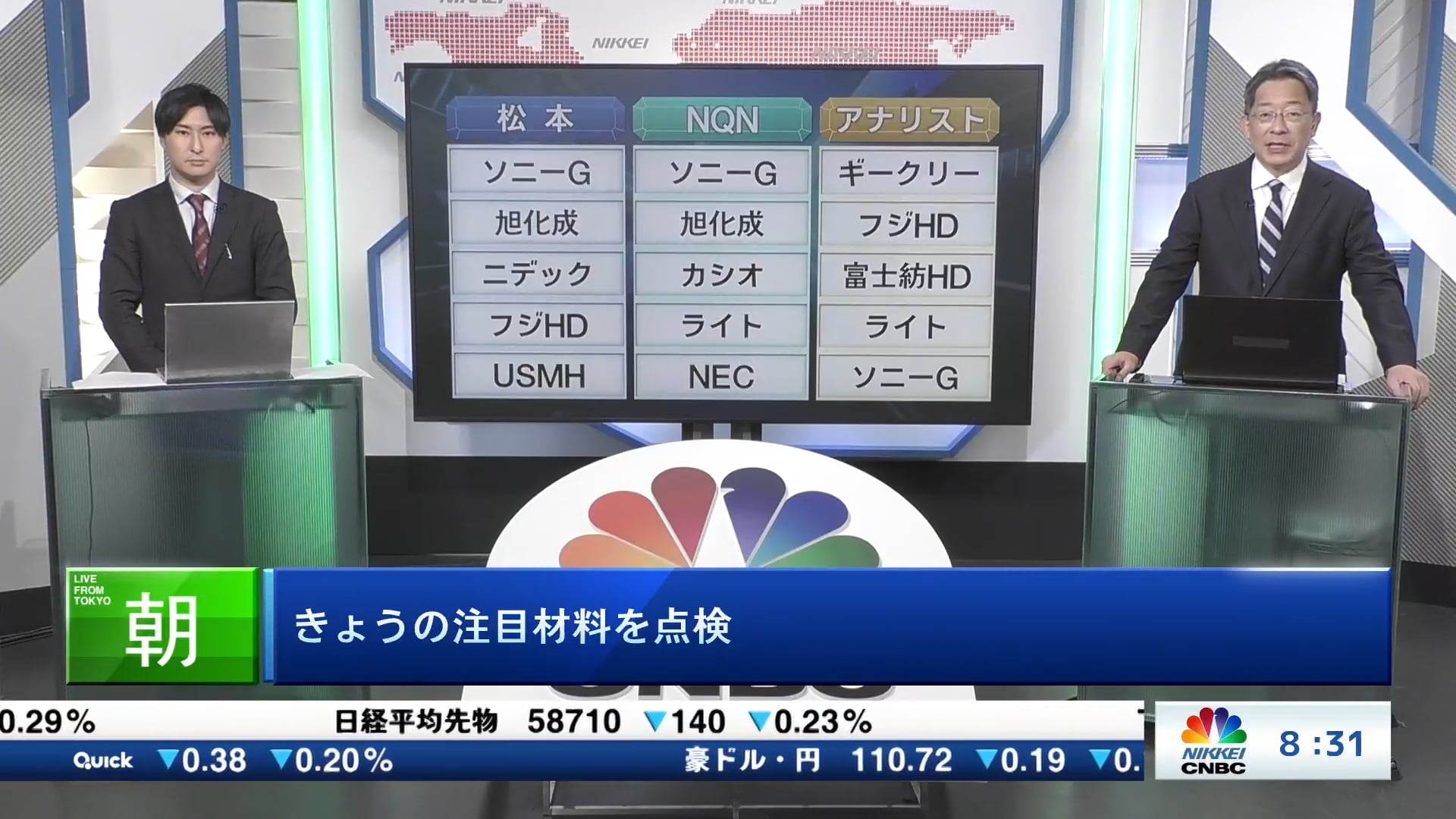 きょうの注目15銘柄 ソニーG、旭化成、ギークリーなど