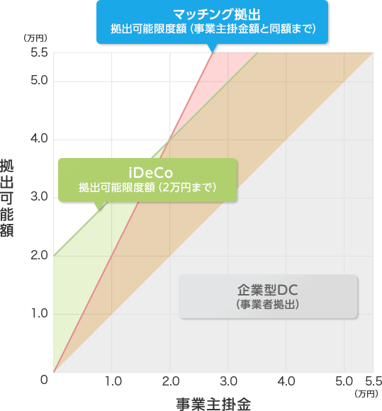 iDeCoとマッチング拠出での拠出可能限度額比較図