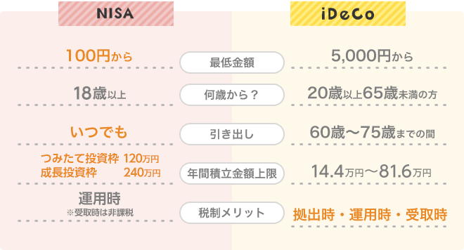 NISAとiDeCoの違いをまとめた図