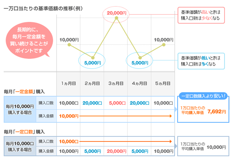 一万口あたりの基準価額の推移(例)