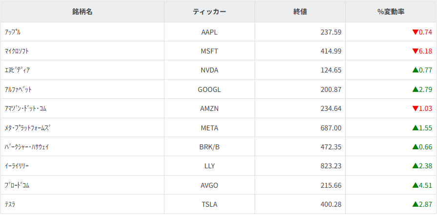 S&P500日中足チャート
