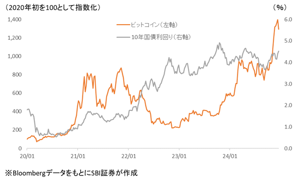 図表3 ビットコイン価格と米10年国債利回り