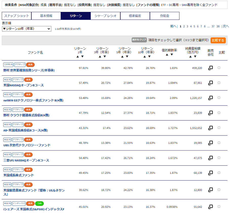 NISA 成長投資枠 10年リターンランキング! 優良ファンドの探し方は?