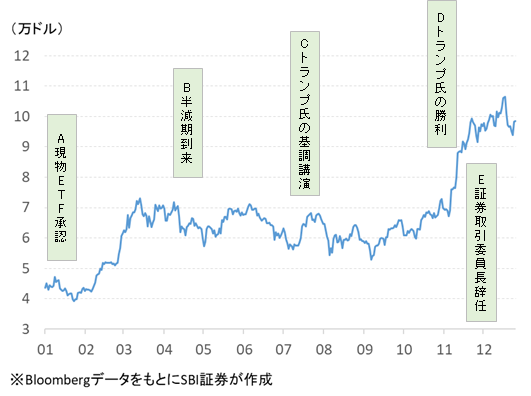 図表2 ビットコイン価格の年初来の動きと主要イベント