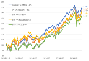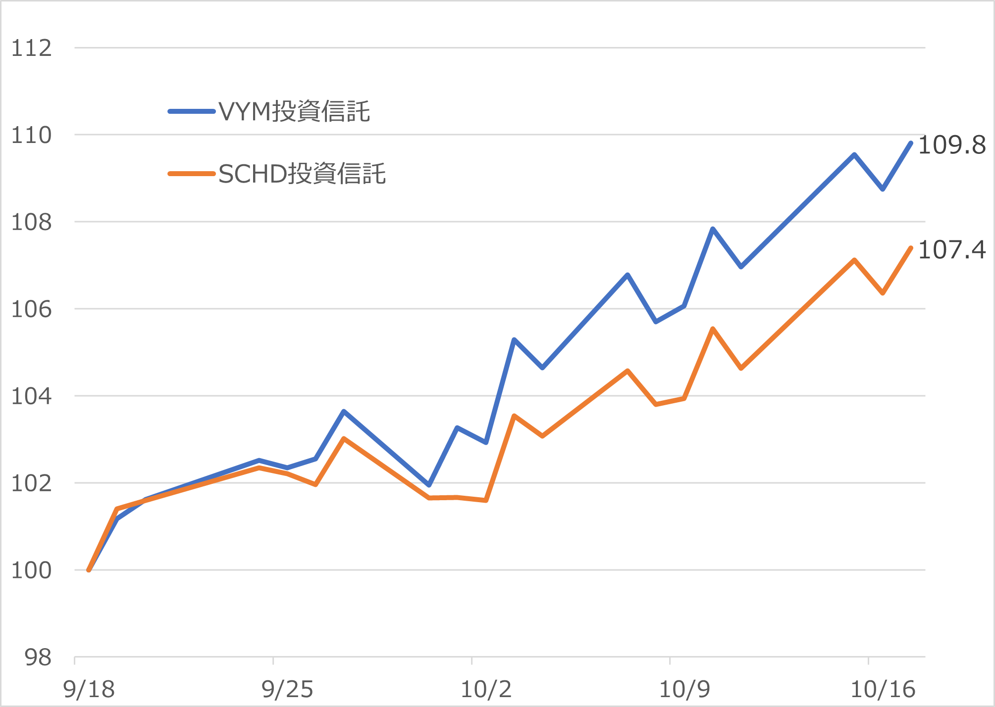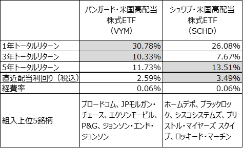 図表2 バンガード米国高配当株ETF vs シュワブ米国高配当株ETF